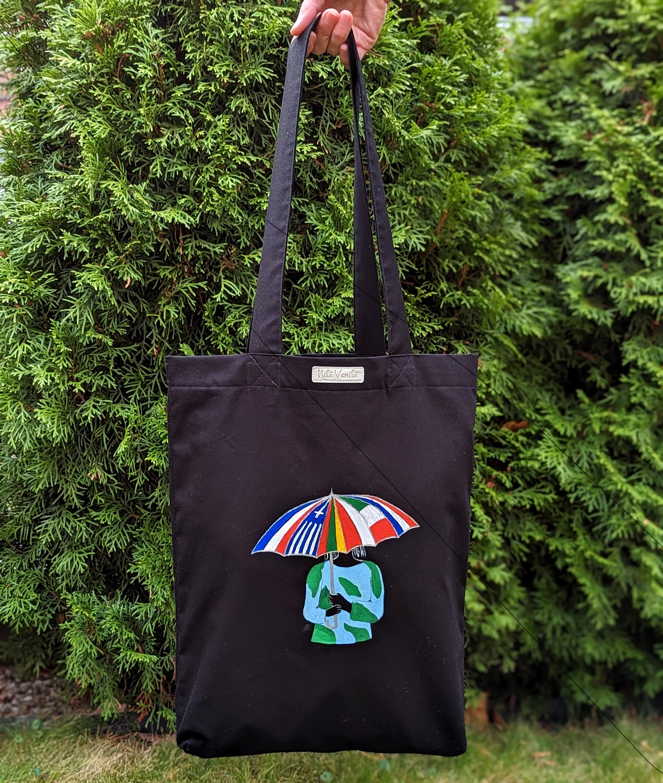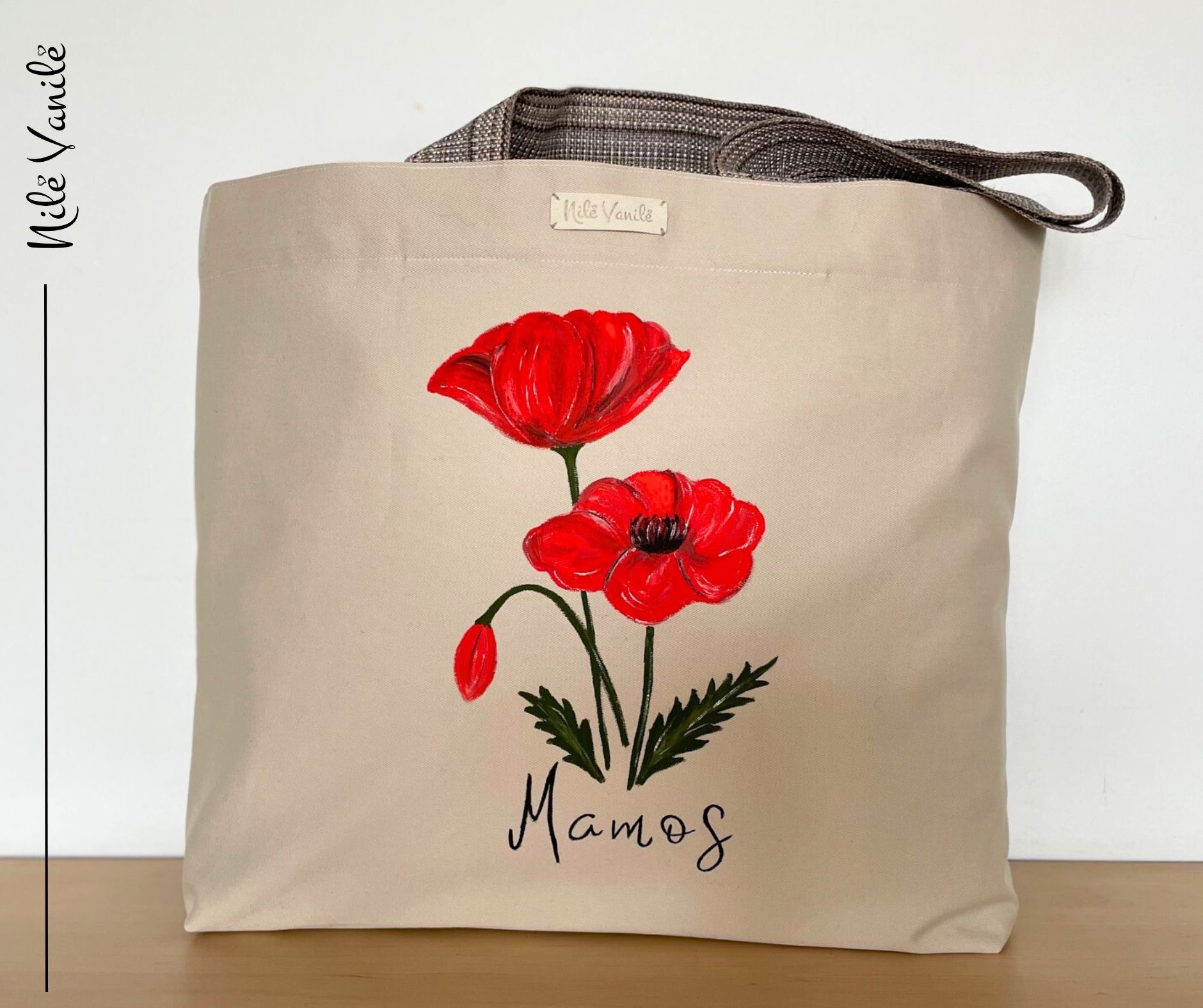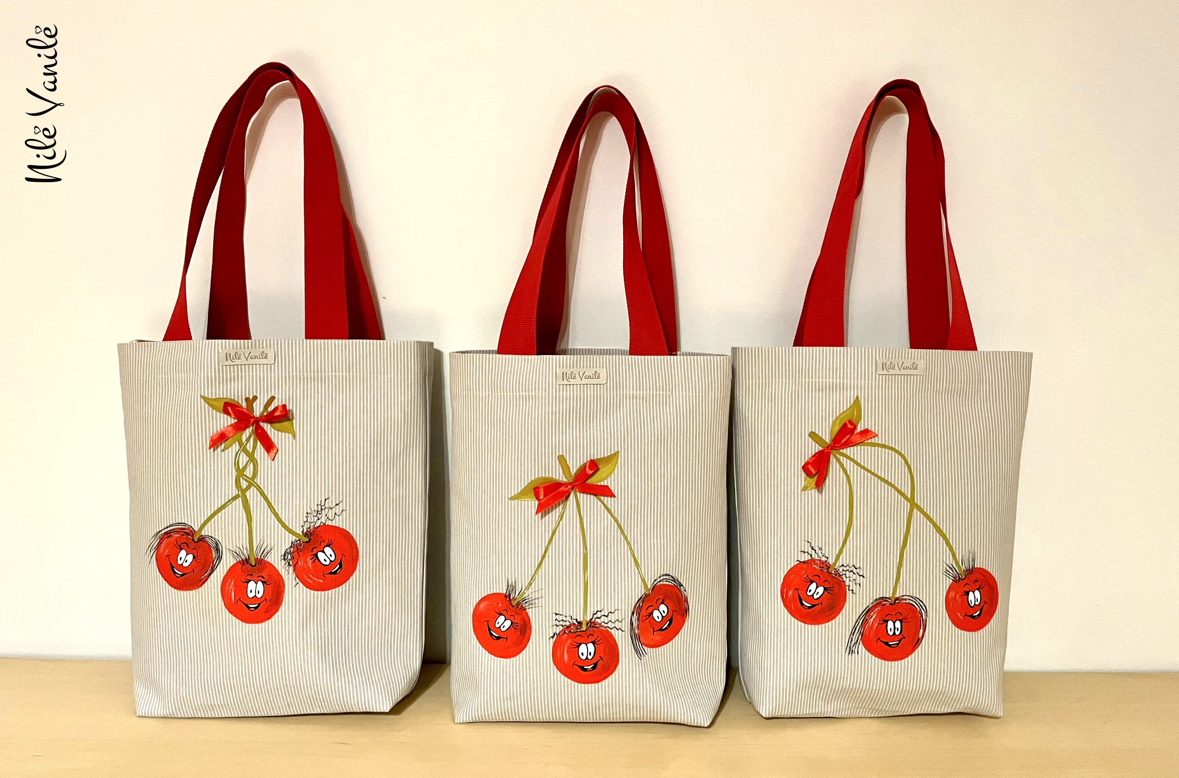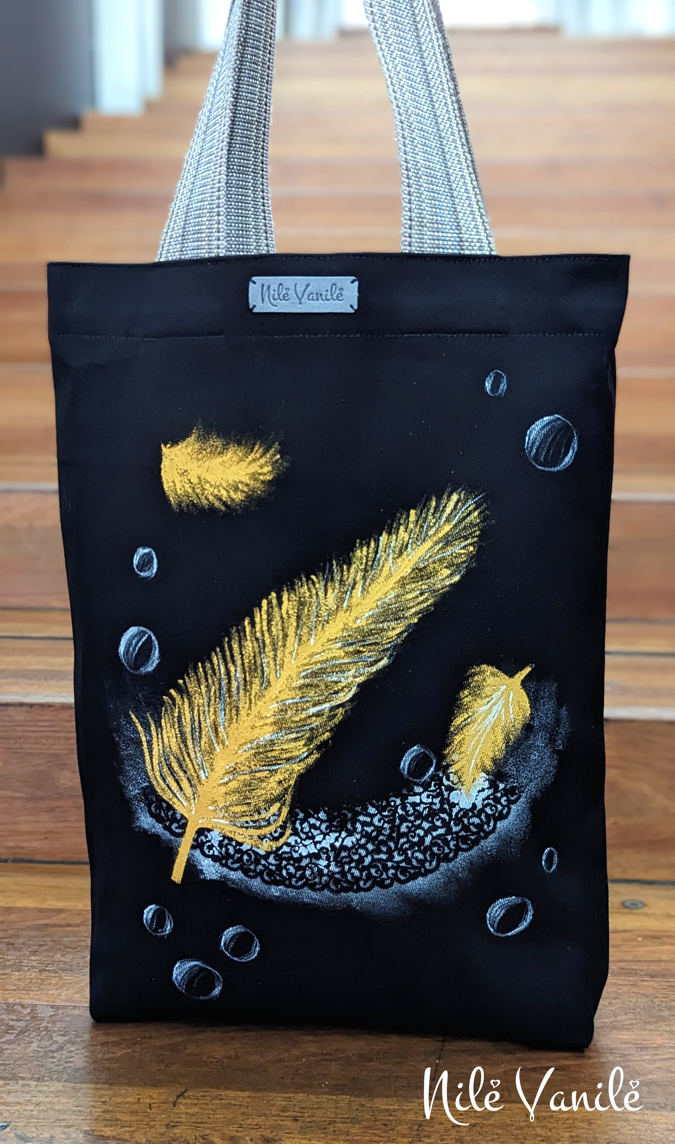 Pirkinių krepšiai siuvami iš tvirto audinio – natūralaus džinso, gobeleno ar neperšlampančio sintetinio audinio. Krepšius dekoruoju tapydama teptuku tekstiliniais dažais. Klientams siūlau pagalvoti apie mėgstamą frazę ar citatą, kurią galiu užrašyti ant krepšio, kad jis taptų dar mielesnis ir labiau asmeniškas.